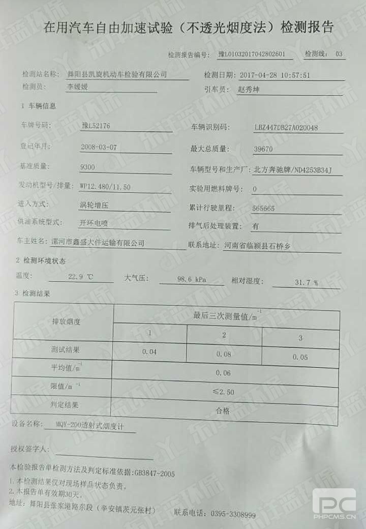 客戶名稱:漯河市鑫盛大件運輸有限公司車輛型號和生產廠:北方奔馳牌 ND4253B34J發動機型號 排量:WP12 480 11 5L, 排放依據:GB3847-2005