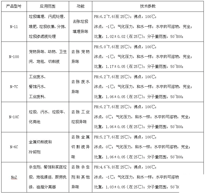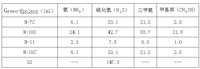 對于不同的異味,1mlGreen-Epoleon產品的理論去除量(mg)如表所示: