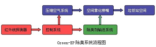 當垃圾運輸車進入垃圾壓縮站設定的控制區域,在垃圾站內最佳位置設定的紅外測試器發出信號,Green-Y智能型除臭設備按照預先設定程序運行。